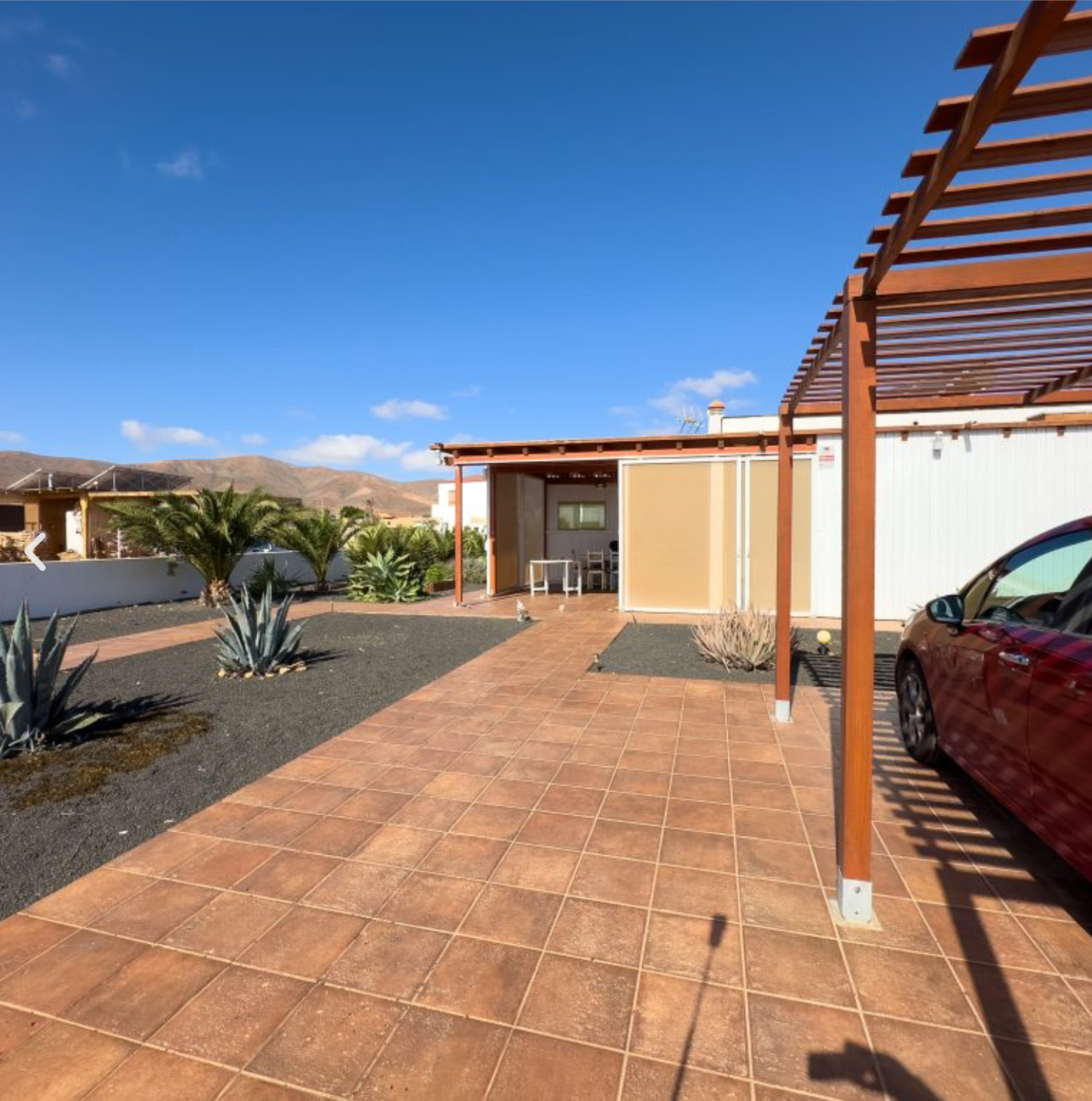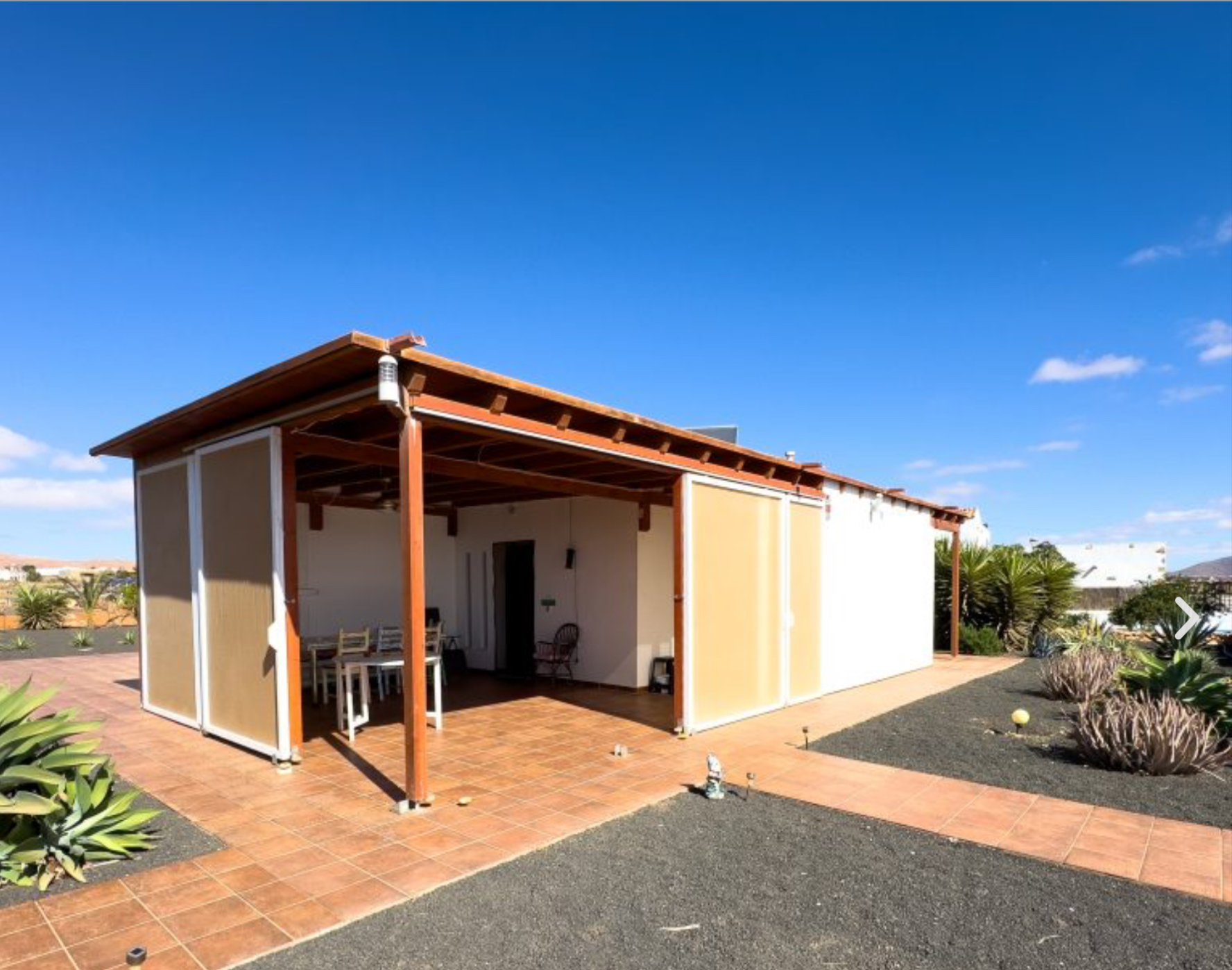 Fantástica propiedad en el Municipio de Antigua, La Corte en Fuerteventura. En una parcela de 1290 metros te ofrecemos este hermoso chalet independiente. La propiedad tiene agua caliente con paneles solares, bomba de presión, sistema de riego automático con bomba, aire acondicionado con invertir y mosquitero en todas las ventanas.
